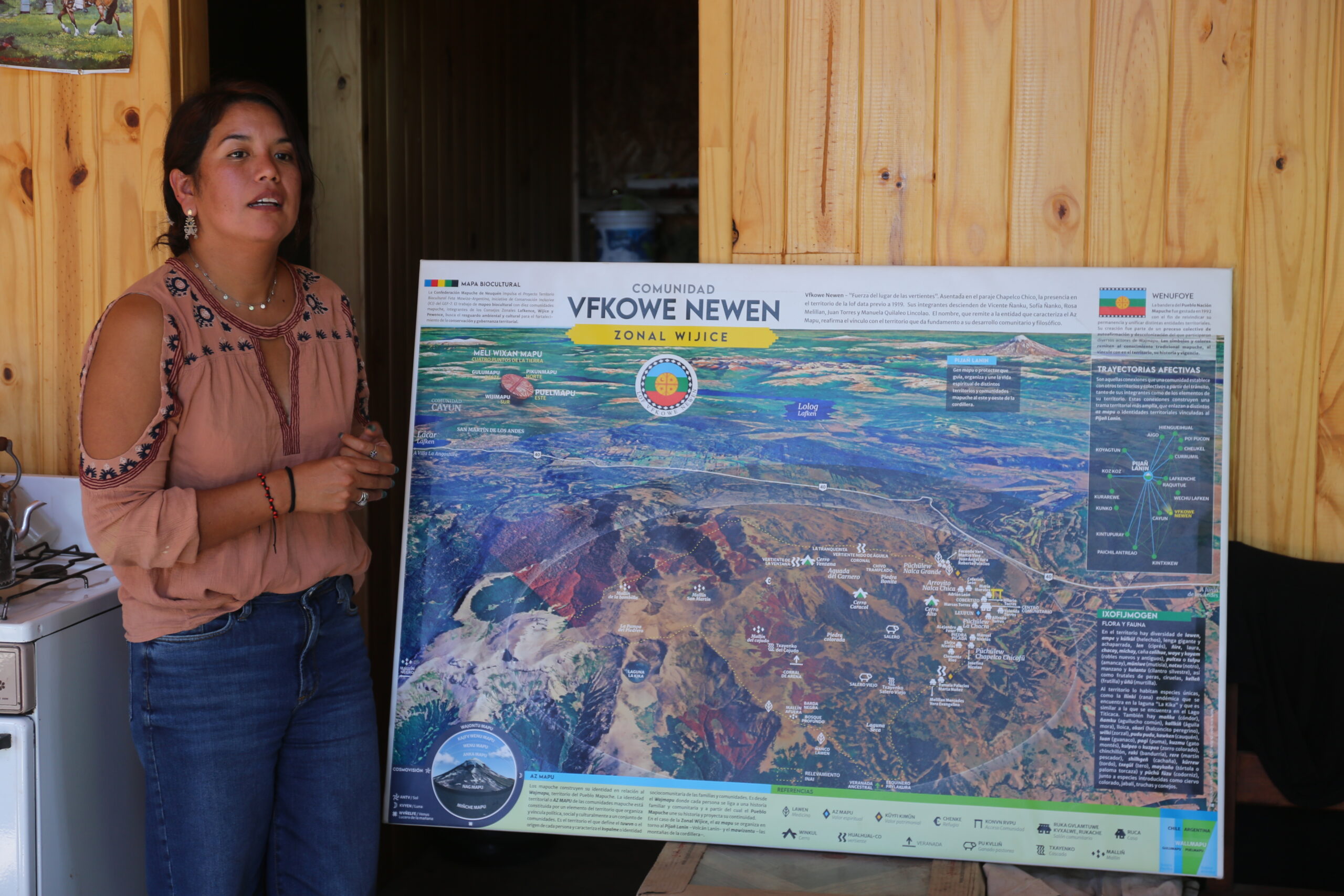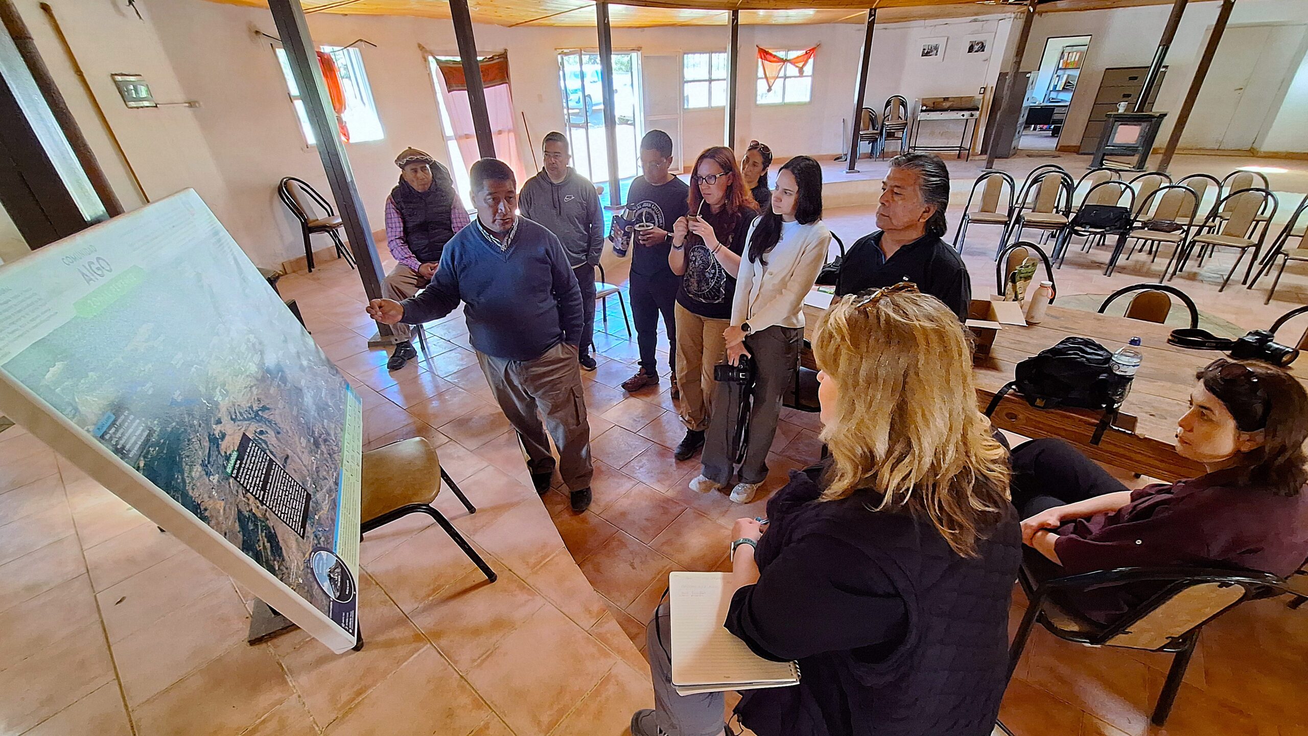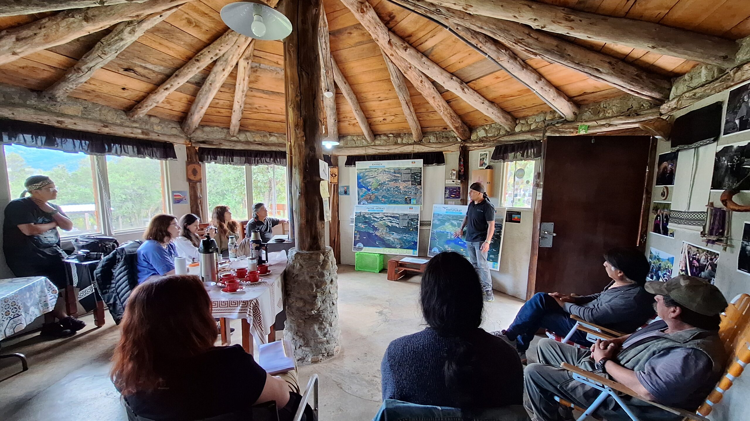 Desde el inicio, el eje que atravesó toda la visita fue el mapeo territorial. En cada lof, los mapas no aparecieron como simples herramientas técnicas, sino como expresiones vivas del territorio. Las comunidades fueron compartiendo sus procesos de construcción, explicando cómo en esos mapas se sintetizan dimensiones geográficas, pero también espirituales, políticas y filosóficas. En ese marco, se destacó su valor como herramienta clave para el resguardo integral del territorio.