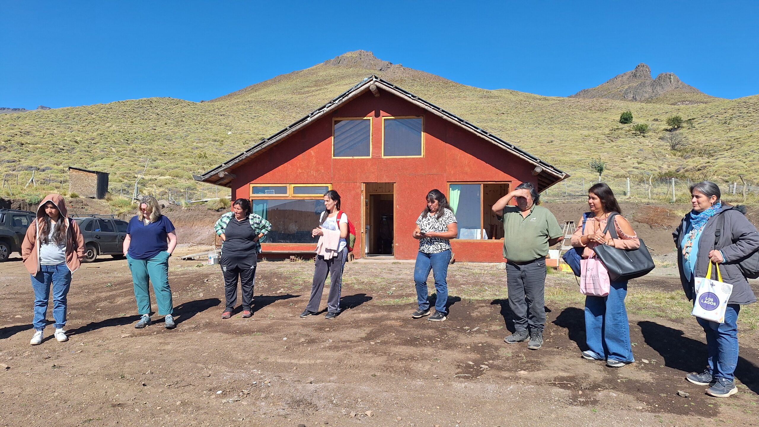 La cuarta jornada se desarrolló en el paraje Ruka Choroy. En el lof se visitó el Salón de la Memoria, donde se expone el trabajo de mapeo territorial, y se realizó un saludo al lewfu, marcando la dimensión espiritual del recorrido. Luego se visitó el Hospital Intercultural Ranguiñ Kien, como parte de las experiencias de articulación entre saberes. Más tarde, se recorrieron distintas iniciativas impulsadas en el marco del proyecto, como la construcción de una bañera para animales y la incorporación de herramientas para el trabajo productivo.