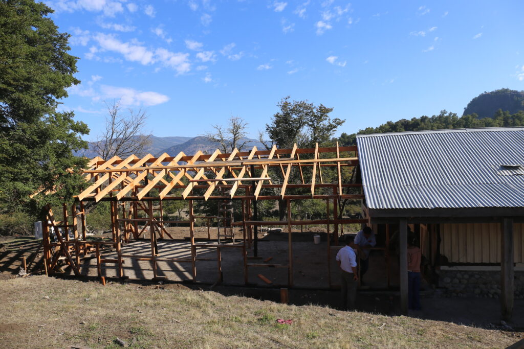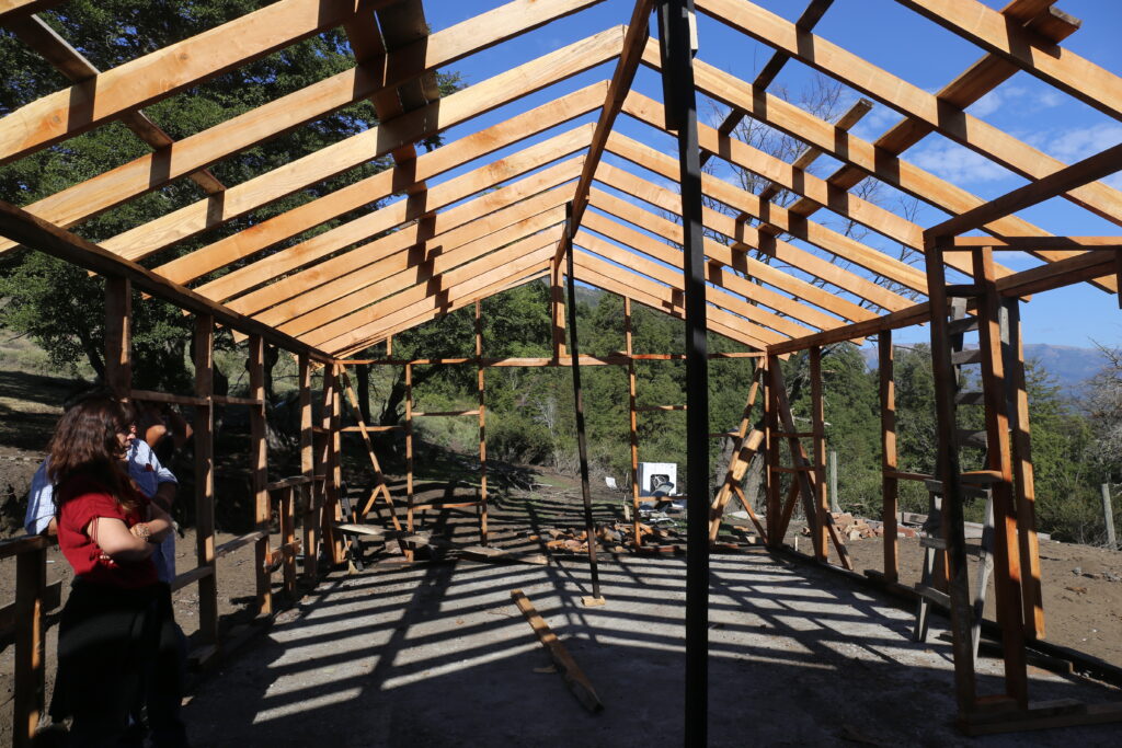 Esa misma jornada, por la tarde, el recorrido continuó en el lof Cayun. Allí se pusieron en común experiencias vinculadas a los talleres de género y de mapuzugun, y se visitó la obra de ampliación del centro comunitario, como parte de los procesos de fortalecimiento organizativo que se vienen impulsando.