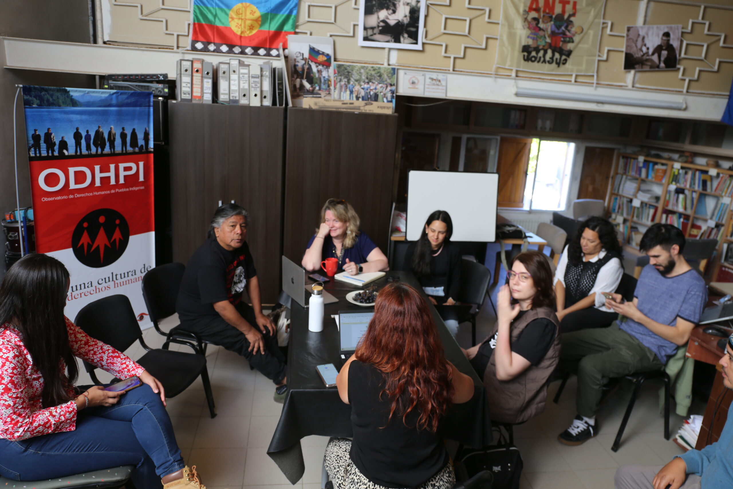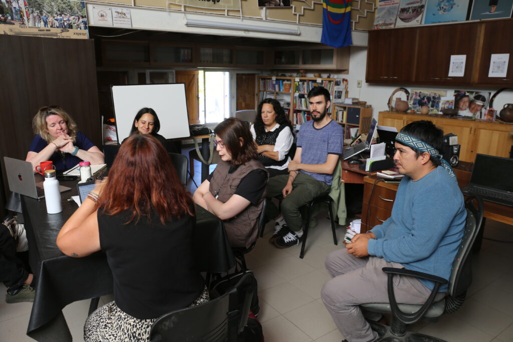 Hacia el final de la semana, la delegación se trasladó a la ciudad de Neuquén capital. Allí se realizaron reuniones en la sede de la Confederación Mapuche de Neuquén y con el ODHPI. Los encuentros permitieron intercambiar con los equipos de comunicación y de educación, proyectando líneas de trabajo a futuro y consolidando articulaciones.